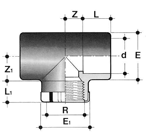 - Anschluss: Klebemuffe / Gewindeanschluss / Klebemuffe, - Abgang Edelstahlring |